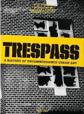 Everything from spray-paint scrawled initials to monumental publicly-funded murals might be called street art, but most of the pieces in Trespass: A History of Uncommisioned Urban Art fall somewhere in between – unsanctioned but appreciated, sometimes quite widely, and even tacitly allowed. Still, the works benefit from being made and seen in places where they shouldn’t be – as famed street artist Banksy puts it in his brief introduction, “…beyond the ‘No Entry’ sign everything happens in higher definition.” The over 300 works – compiled and contextualized by Paper magazine Senior Editor Carlo McCormick, Wooster Collective founders Marc and Sara Schiller, and editor Ethel Seno – include 150 artists spanning four generations, working around the world, making pieces massive and political, small and quirky. Trespass presents them by theme, as part of a growing movement, rather than as they might be seen on the street – by location, and at a particular time, sometimes a very brief one. Below, a few pieces.
