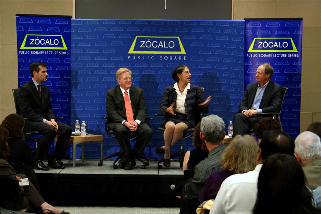 Audience members wondered whether the current roster of appointees signals that Obama will govern from the center, and what that means for progressive causes and humanitarian aid. Garcetti pointed out that the center has already shifted, with Rush Limbaugh taking Hillary Clinton’s appointment as a sign of centrism. Echaveste added, “I believe a President Obama understands that he is governing for the entire country. I don’t believe it’s fair to say that the Bush administration understood that or believed it.” Consensus already exists on key issues once considered left-of-center, like universal health insurance, or pursuing what deLeon called sustainable security in Afghanistan.