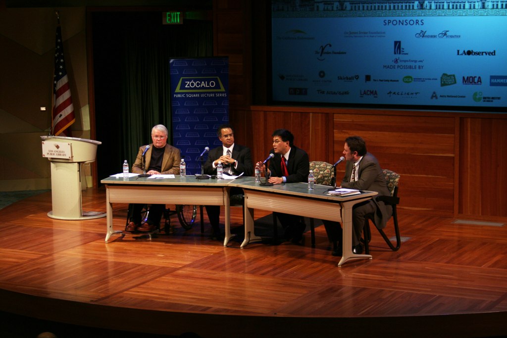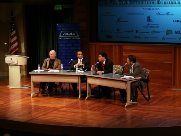 “Nothing says ‘I love you’ like a budget deal,” said moderator Joe Mathews at the Los Angeles Central Library, where a full and diverse audience had gathered to talk about California’s cash crunch. Unfortunately, as the panelists made evidently clear, a budget won’t solve everything. State Controller John Chiang, New America Foundation senior fellow Mark Paul and Barclays Capital’s Peter Taylor joined Mathews to tell the crowd how California got into this mess, and how it might get out.