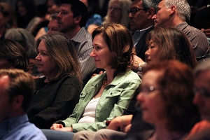 Guests with copies of Meghan Daum's Life Would Be Perfect If I Lived in That HouseAs Daum said in Q&A, the foreclosure sign may well be for this economic crisis what the breadline was for the Great Depression. But she didn’t think the bubble burst would end our fascination with houses because they remain an extension of ourselves. (And renting can fulfill some of the same urges, she joked: “It’s like dating someone you know you’re not going to marry.”) The bubble, Daum said, “doesn’t change the fact that there’s something so intense and exhilarating about creating a space around you.” Even hypothetical house-hunting – scouring the Internet for homes in other cities or countries – can become “the vehicle for imagining this whole other life.”