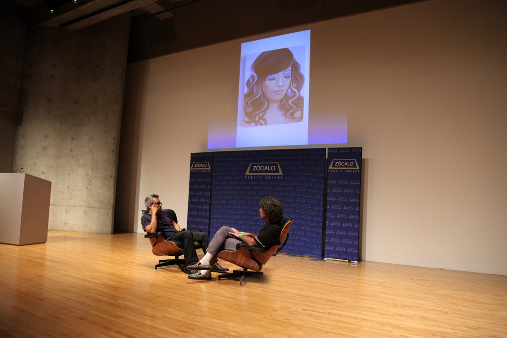 Huerta painted the backs of heads, life-sized bodies seen from behind, and masked wrestlers, exhibiting around the world and being featured at the Whitney Biennial. In an event co-presented with the Los Angeles Department of Cultural Affairs, and supported in part by the National Endowment for the Arts, Huerta chatted with Pagel, an art critic, and a packed house at MOCA Grand Avenue about his work, and how he always destroys it before he makes it.