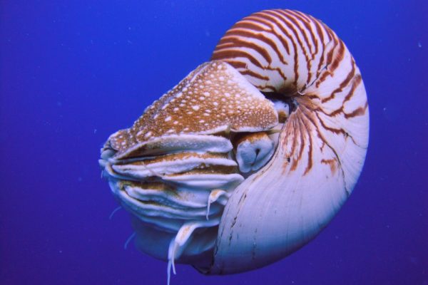 A chambered nautilus, the only living cephalopod with an external shell. Photo courtesy of Manuae.