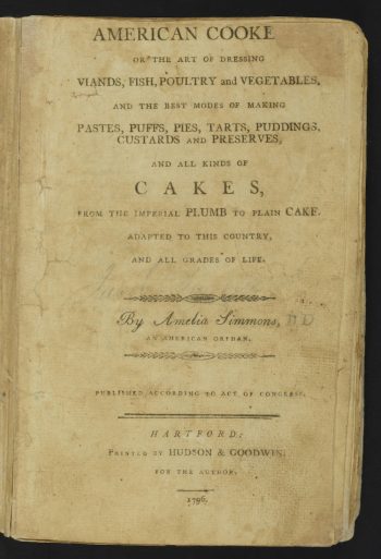 After the Revolution, Americans sought a national identity. American Cookery, the first cookbook written and published in the country, proposed one approach to American cuisine. Photo courtesy of Tomwsulcer/Wikimedia Commons.