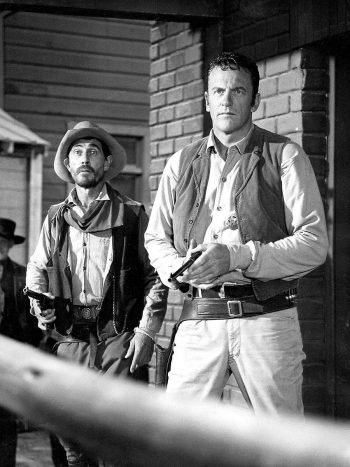 Ken Curtis and James Arness in “Gunsmoke,” the hit TV show that popularized Dodge City’s Wild West aura. Photo courtesy of Wikimedia Commons.