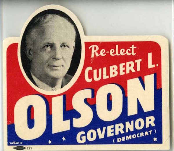 But he was much more than that. He was a progressive who was far ahead of his time, perhaps too far for his own good. I believe now would be a very good time for a reappraisal and deeper understanding of Governor Olson. I say that not merely because Culbert was my grandfather. He proved prescient about the threats to American society—from economic inequality, war, racism, and the dangers of religious tribalism—that are all too much with us today.