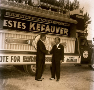 U.S. Senator Estes Kefauver (left), who sought to keep gambling illegal, is photographed with John Spottswood in 1956. Courtesy of Florida Keys-Public Library, Wright Langley Collection/Flickr.